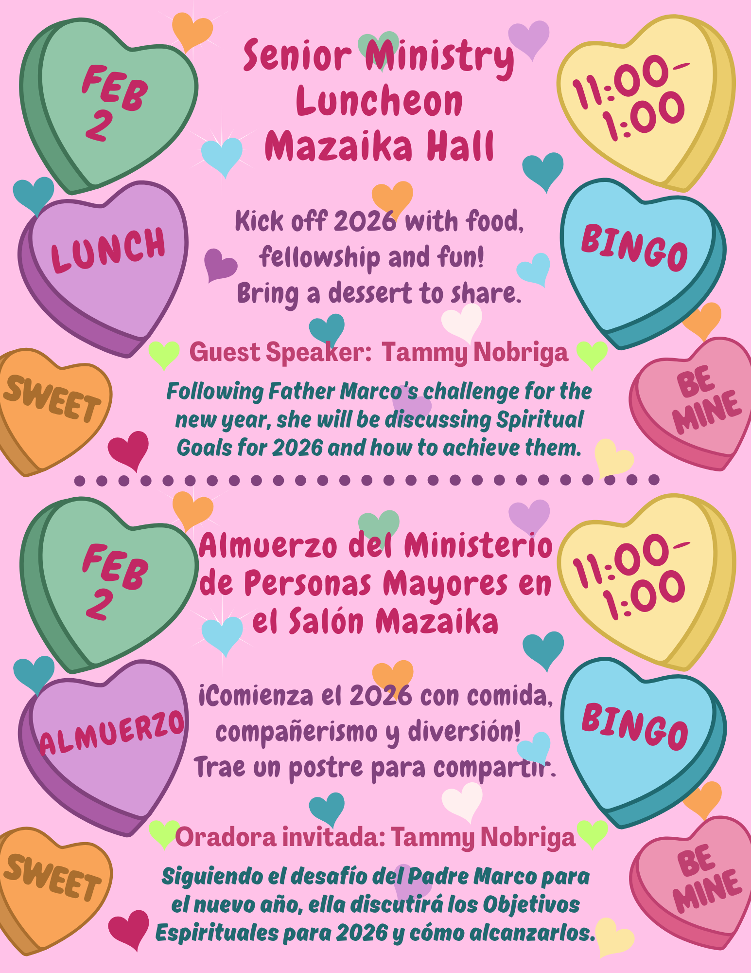 Padres de los estudiantes que recibirán su Primera Comunión esta primavera, por favor tomen nota de que el Retiro de la Primera Eucaristía se llevará a cabo el sábado 7 de febrero, de 9:00am a 3:00pm. Se ofrecerá un desayuno ligero y almuerzo. No olviden traer una botella de agua.